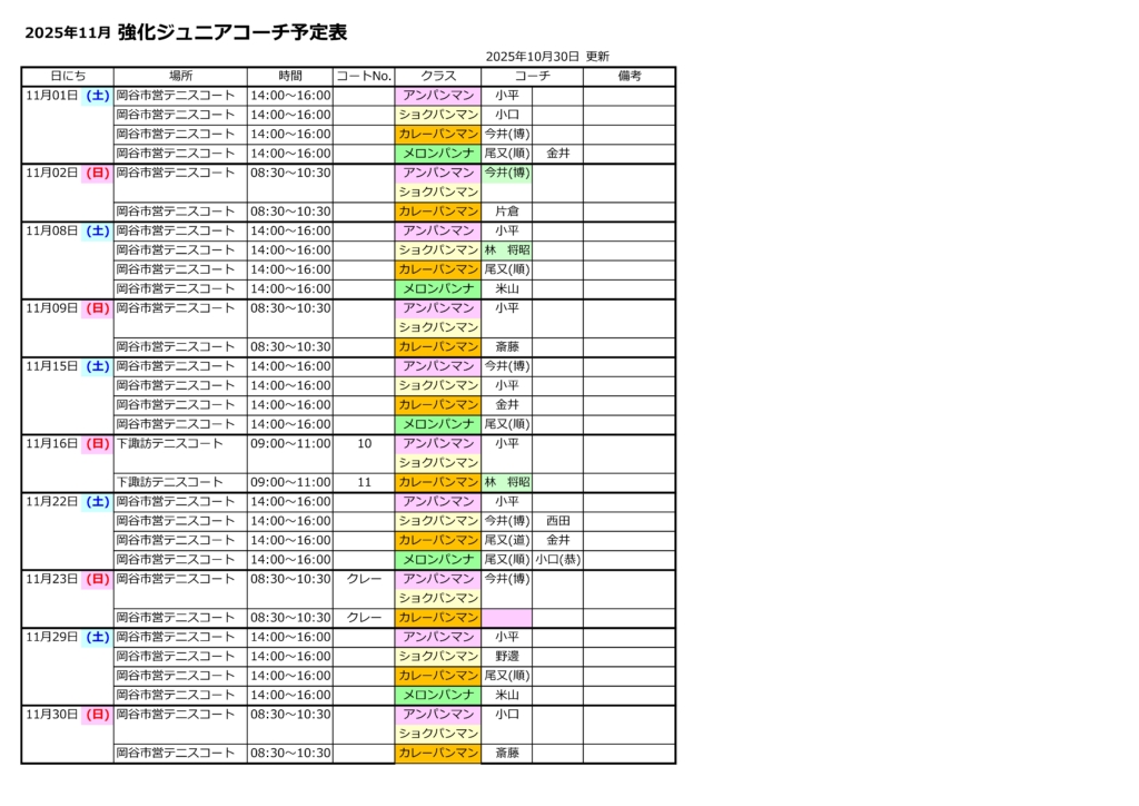 2024年度岡谷市試合日程です。ジュニア強化クラスの選手の皆さんは予定しておいて...